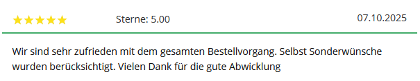 Sie können Ihren gekauften Artikel innerhalb von 14 Tagen ohne Angaben von Gründen widerrufen. Dies betrifft nicht individuell angefertigte Artikel (auch Gravuren) oder Sonderanfertigungen.
