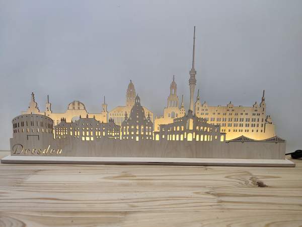 In dieser Skyline wurden verschiedene Sehenswürdigkeiten der Stadt Dresden eingearbeitet.